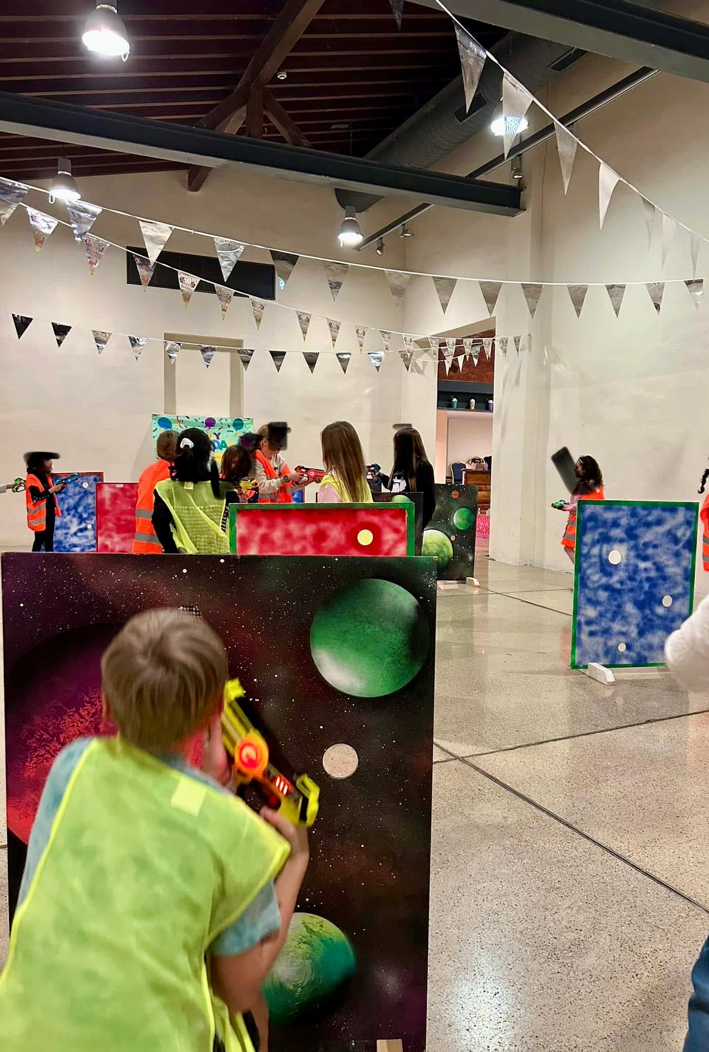 Our program combines Survivor wooden obstacle challenges with exciting Laser Tag battles – all in one package for non-stop fun, action, and teamwork.