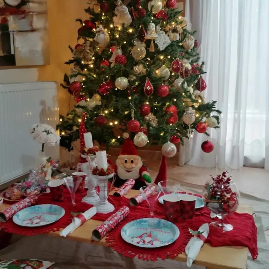 - Sousplat, plates, glasses, spoons, napkins