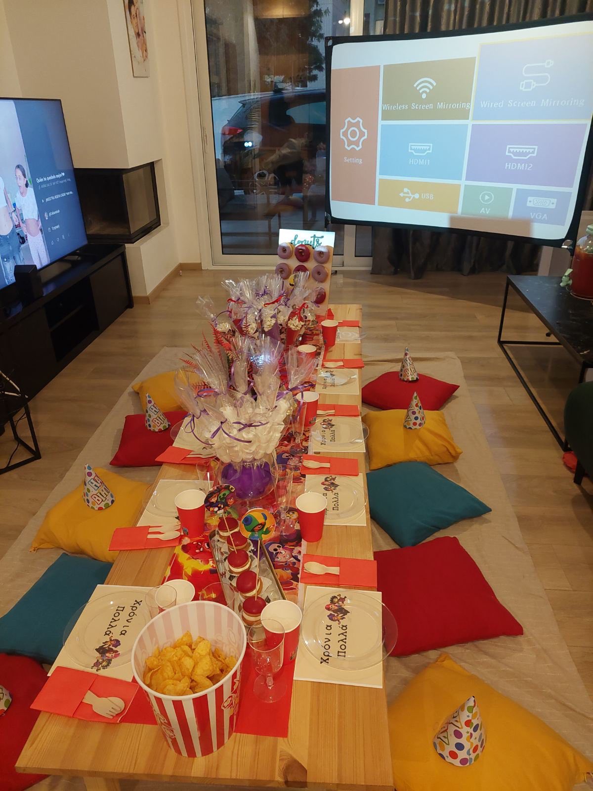 - Movie night equipment (projector + screen)